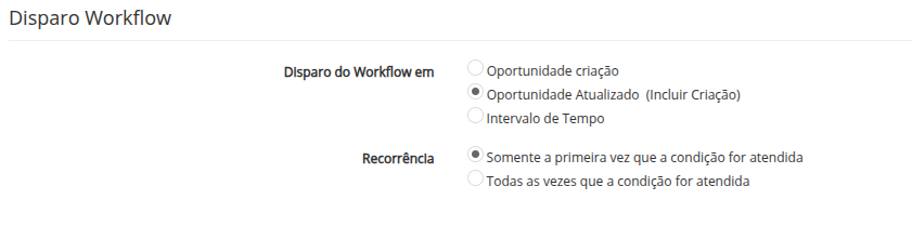 Selecione, abaixo, o momento e a recorrência em o workflow deverá ser executado: