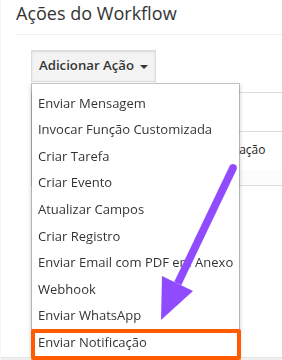 De forma complementar ao sistema atual de notificações internas do Gluo CRM, introduzimos a opção de Enviar Notificação via Workflows.